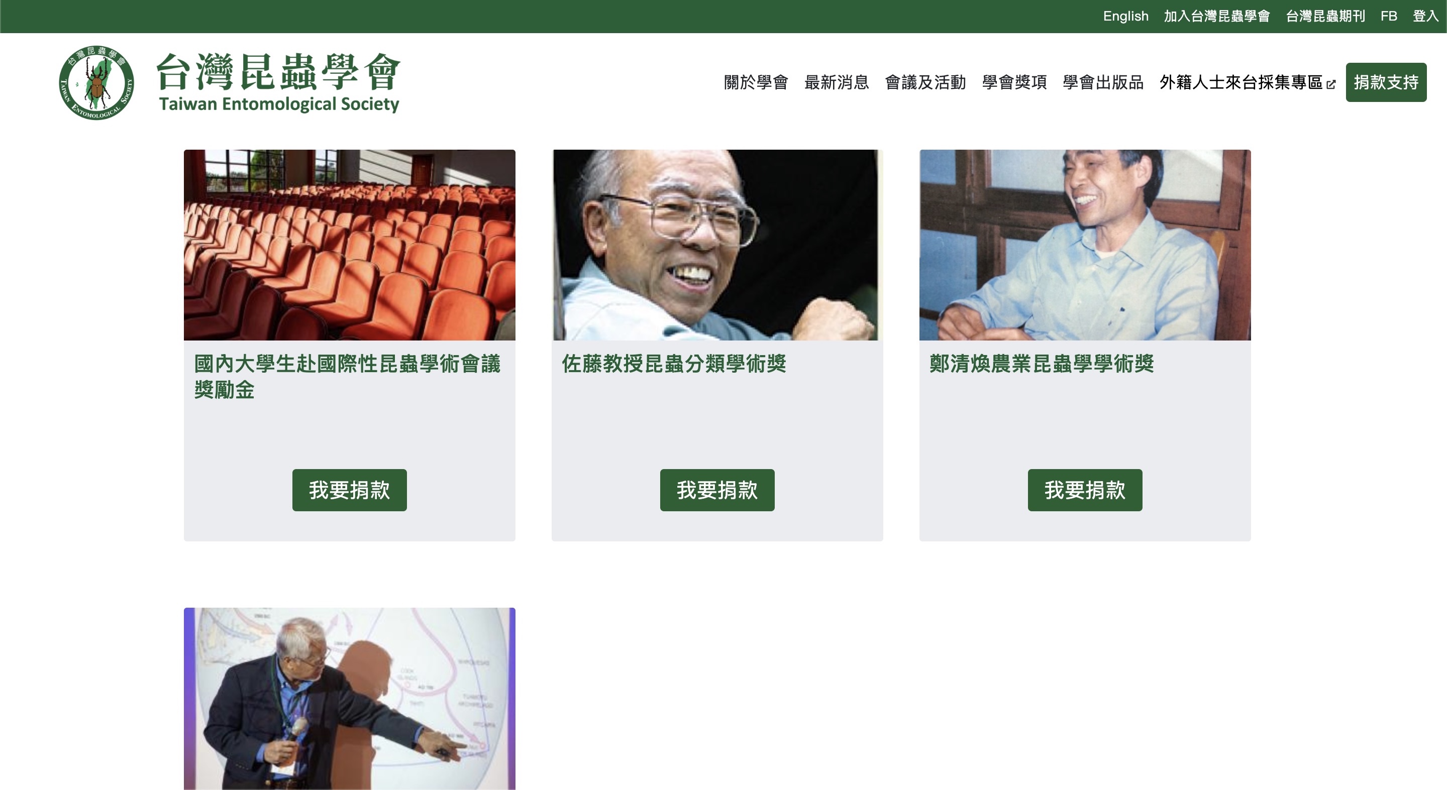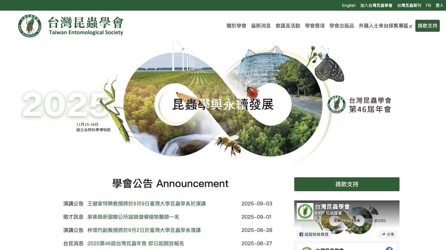 連結官網使用 Drupal 8 內容管理框架獨立開發的台灣昆蟲學會官網,提供線上捐款、報名年會、發表論文讓系統匯出 Word 檔案和後台內容管理系統。