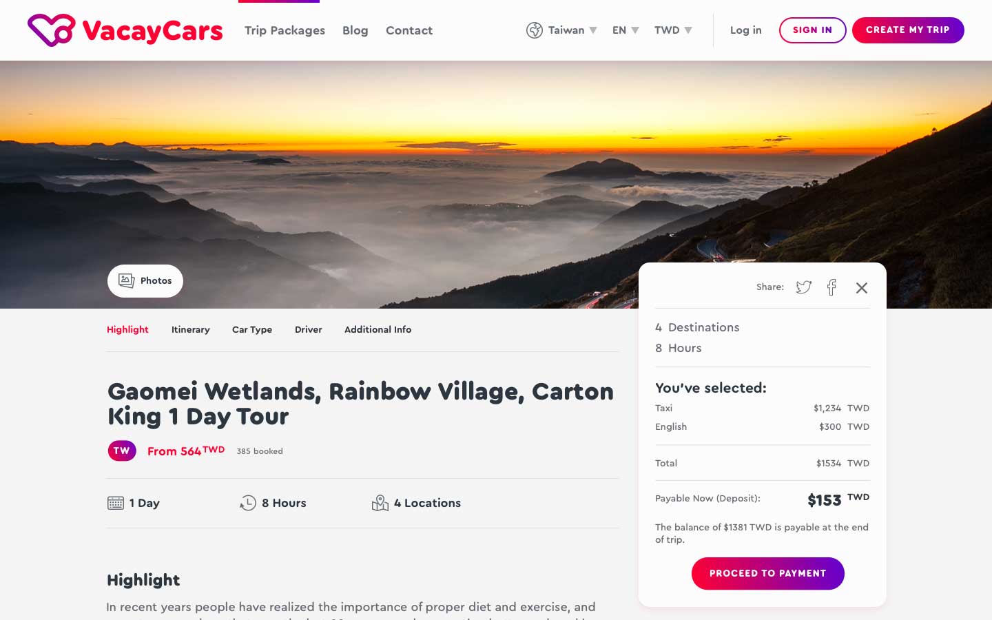 VacayCar 是一個線上預訂行程的旅遊客製化網站,使用到 Yii PHP Framework 框架技術開發,提供行程導覽、自訂行程、線上預訂系統、旅遊部落格,設計包含RWD響應式網頁設計和品牌識別的 Logo,網站能夠透過各種平台來瀏覽,方便使用者隨時自行規劃和預訂旅遊行程。